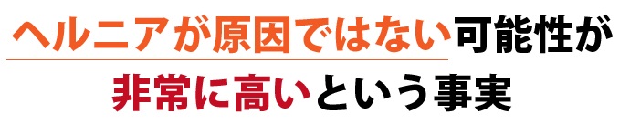 ヘルニアを切除して神経の圧迫が無くなったのに、痛みが消えない人やヘルニアがあるのに痛みがない人が続々とみつかりました。これはヘルニアが痛みシビレの原因ではなく、実は他の原因がありうることを示しています。「ヘルニアがある=痛い」とは限らず、今までの「ヘルニア犯人説」は必ずしも当てはまらないことが、明らかになってきました。→参考 http://www9.nhk.or.jp/gatten/articles/20111116/index.html