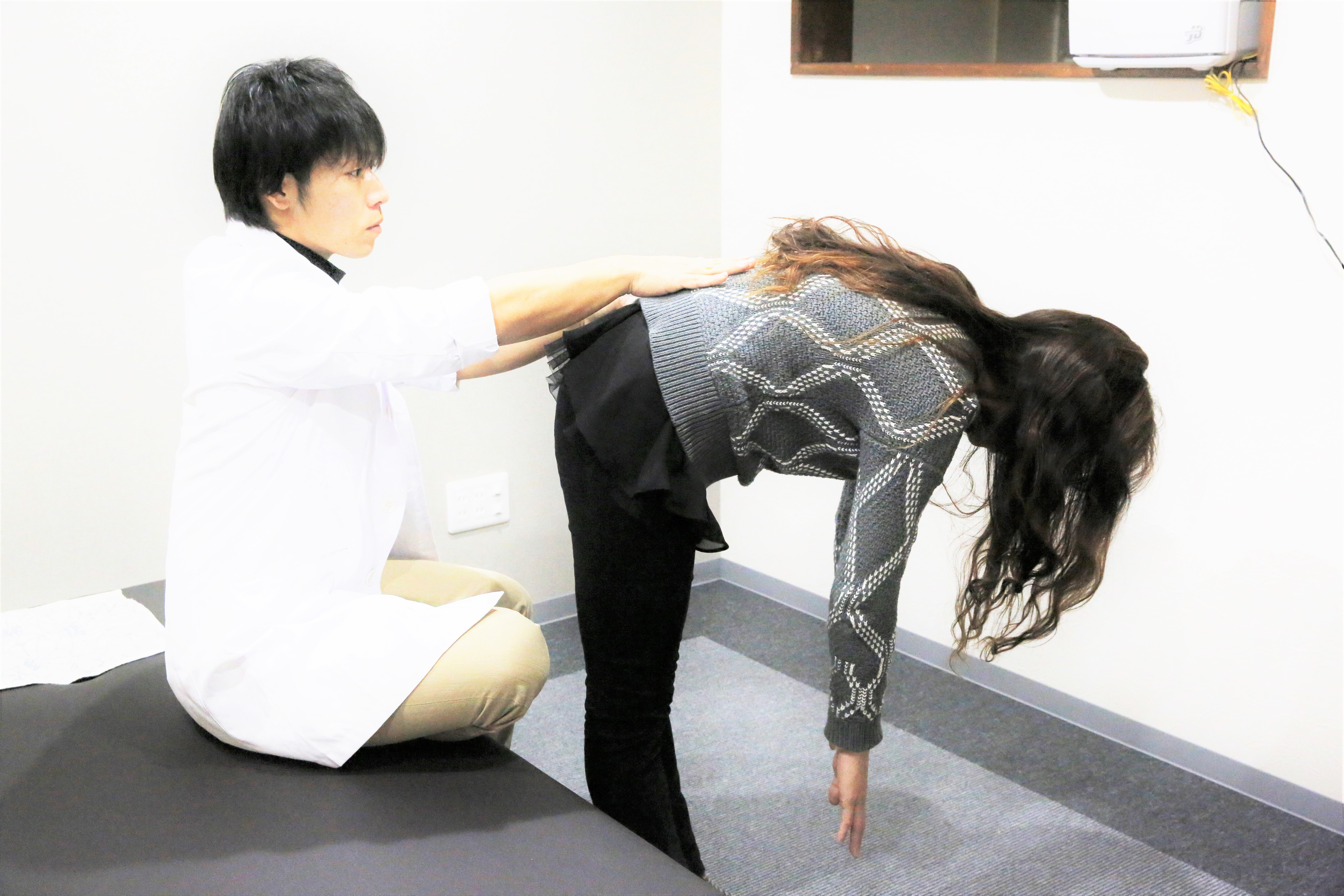どのような動作で痛みが出るのか。身体を動かして骨盤・背骨のバランスは