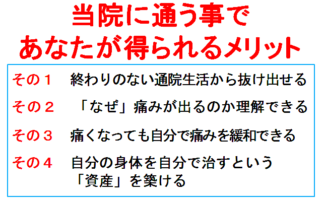 このような施術では根本的な改善は期待できず、あなたの身体を壊すだけで痛みはどんどん強くなっていきます。