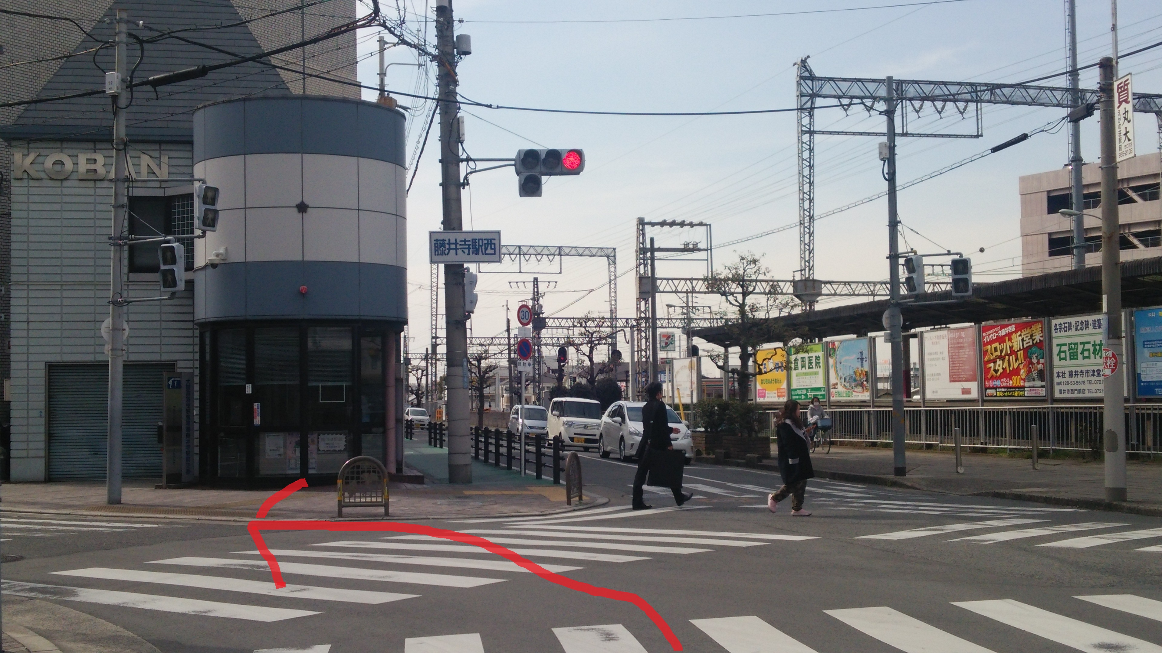 交番を曲がりずっと直進→『野中寺』交差点を直進