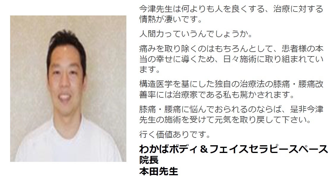 ぜひ私と同じ症状の方は諦める前に絶対にに「治る・治すんだ」と自信を持って今津先生と共に治療に励んでください。