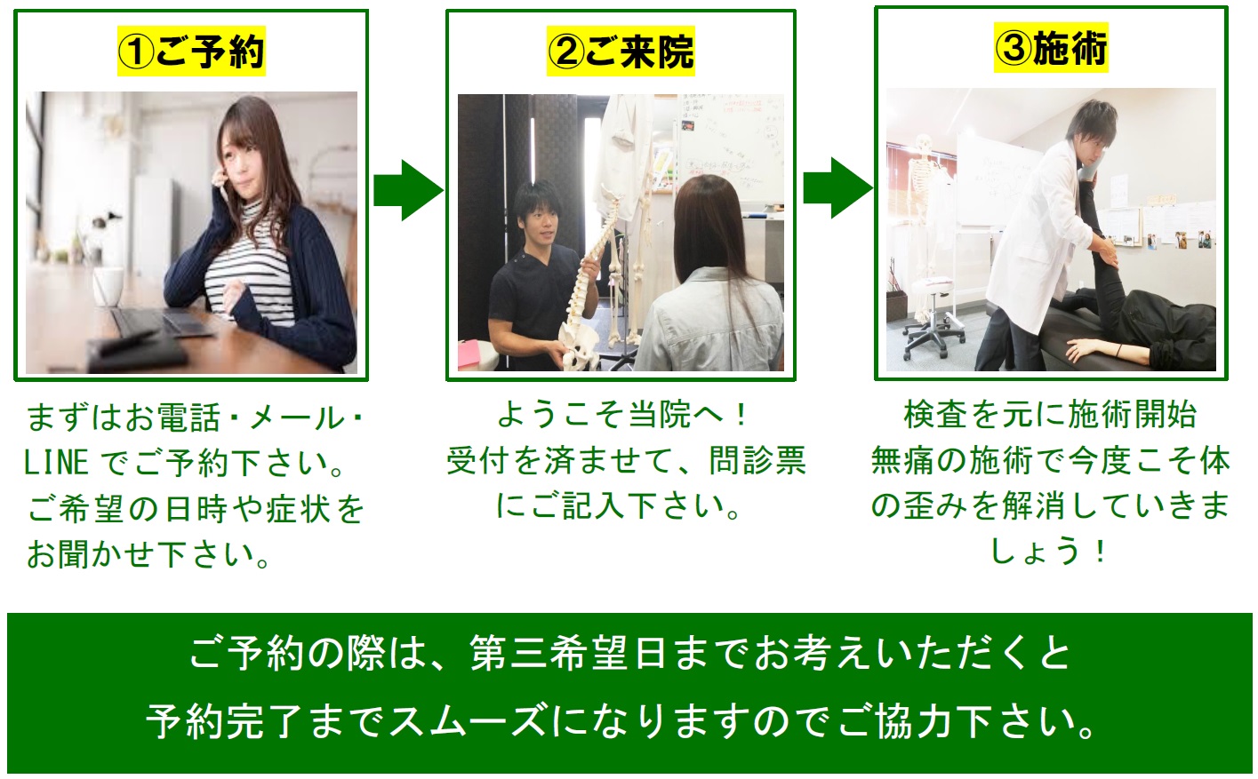 ただ単に骨盤が歪んでいるから整えて戻すというものではありません。当院の施術は、その骨盤や背骨が歪んでる原因を探し出して調整することによって骨盤と背骨を整え体のバランスを整えます。