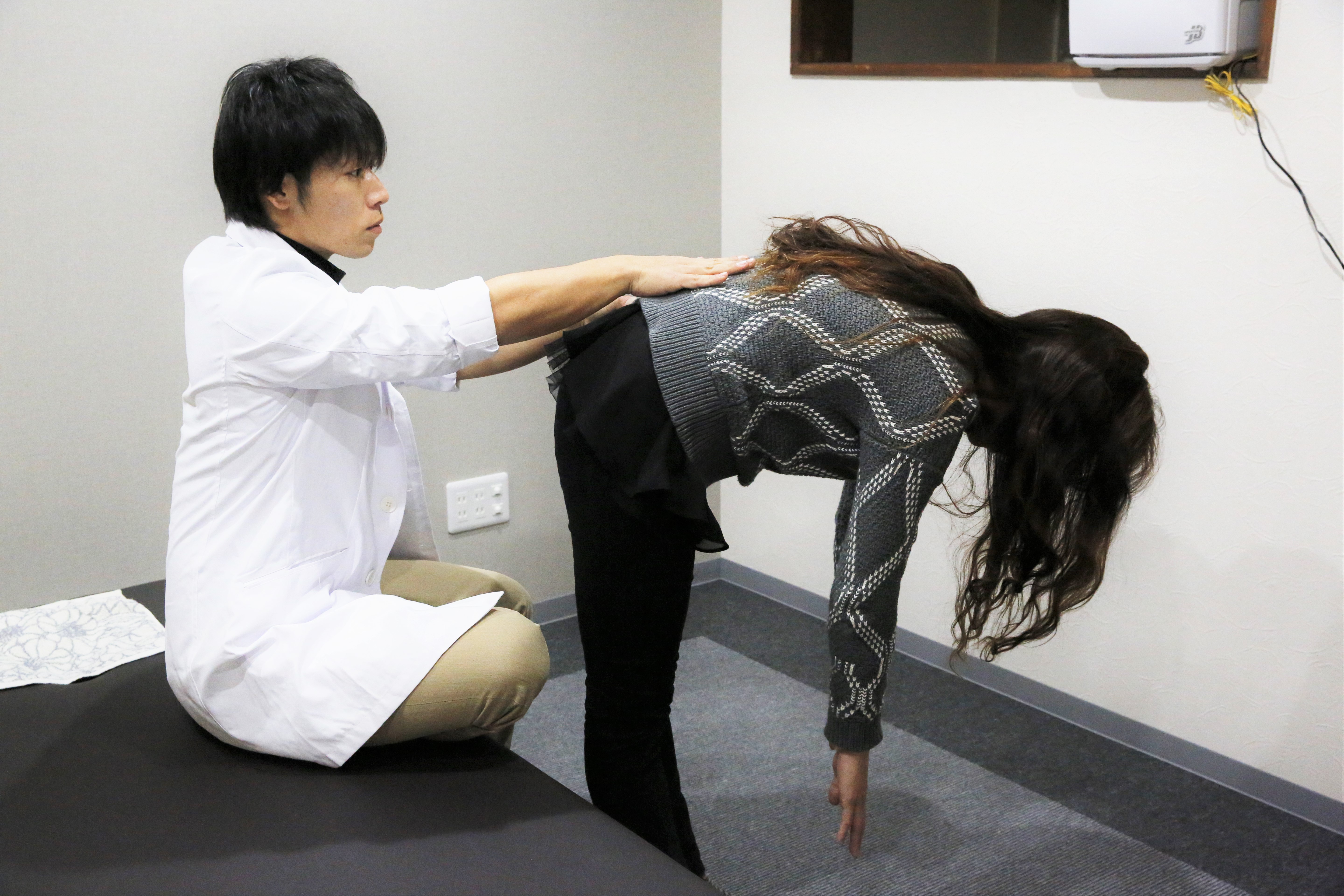 どのような動作で痛みが出るのか。身体を動かして骨盤・背骨のバランスは