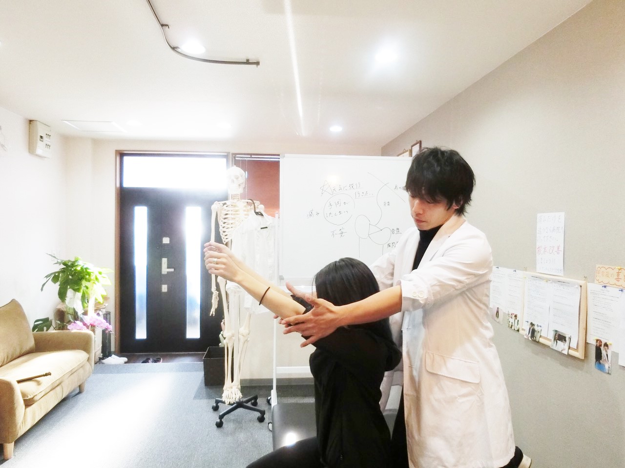 そこで当院はまず肩の位置を調整して胸を張れるにしてしっかりと呼吸ができるように調整します