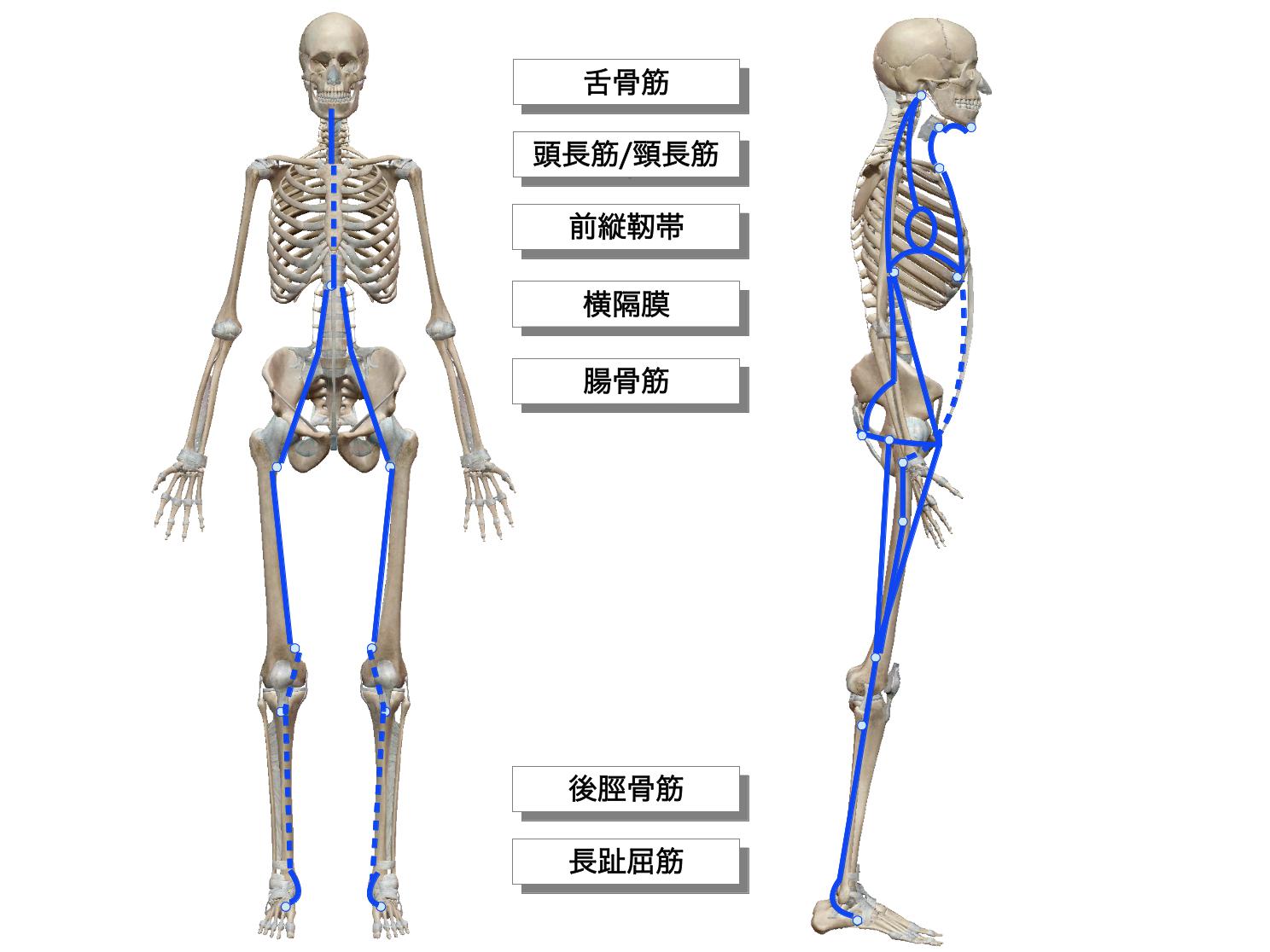 青いところが筋肉で同じ筋膜に沿って絵を描いています