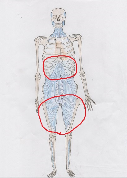 そのラップがこの絵だと内モモから骨盤を通り、呼吸をする筋肉である横隔膜を通って首まで達しています