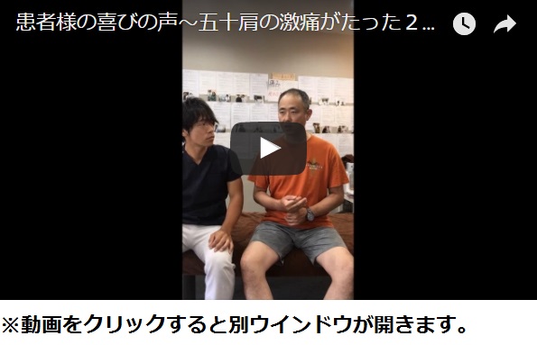 丁度その時首から右肩にかけてすごく痛かったんですけど、そこの施術をやってもらった以降では劇的に肩の激痛も改善されました。