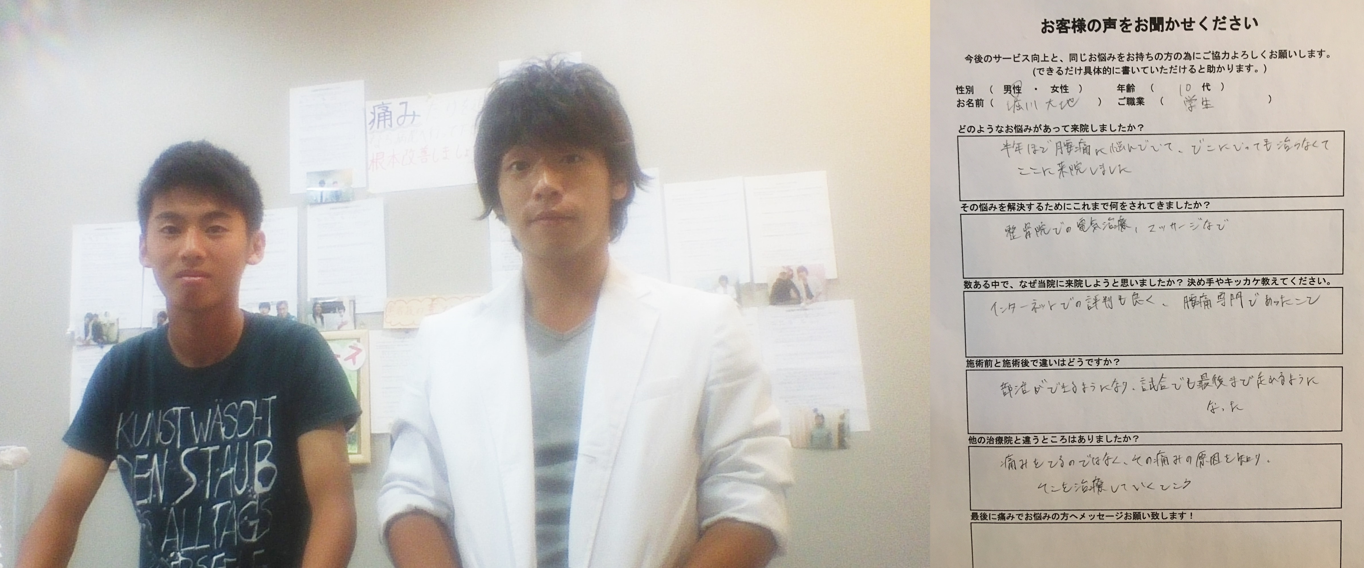 半年ほど腰痛に悩んでいて、どこに行っても治らなくてここに来院しました。